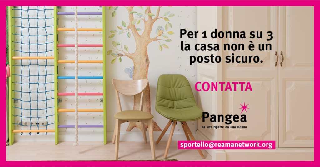 PER 1 DONNA SU 3 LA CASA NON È UN POSTO SICURO. Ogni stanza, anche se di un’abitazione bella e apparentemente ideale, può celare un momento di violenza o il ricordo di un abuso. Invece di nasconderlo, con questa campagna vogliamo mettere in luce tutte le forme di violenza attraverso i luoghi in cui sono avvenute. Pangea rappresenta LA VIA D’USCITA sicura da un mondo di violenza domestica.