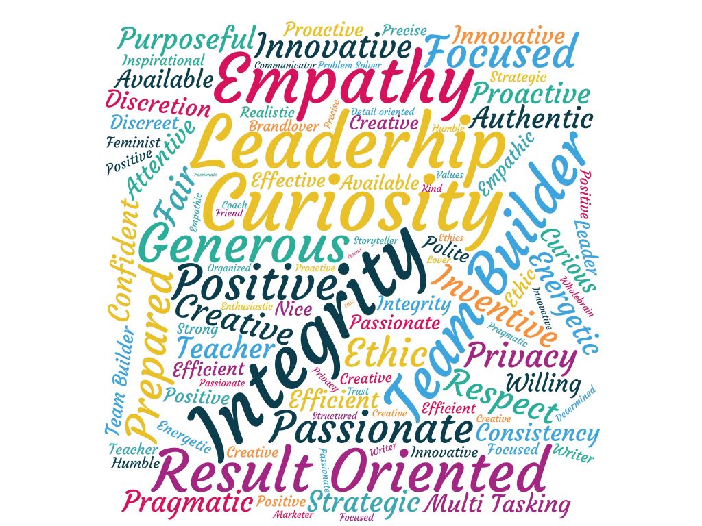 Queste sono le parole che ho trovato nei tanti feedback ricevuti nel corso del tempo. Ogni parola ha colto un tratto della mia personalità o del mio modo di lavorare.